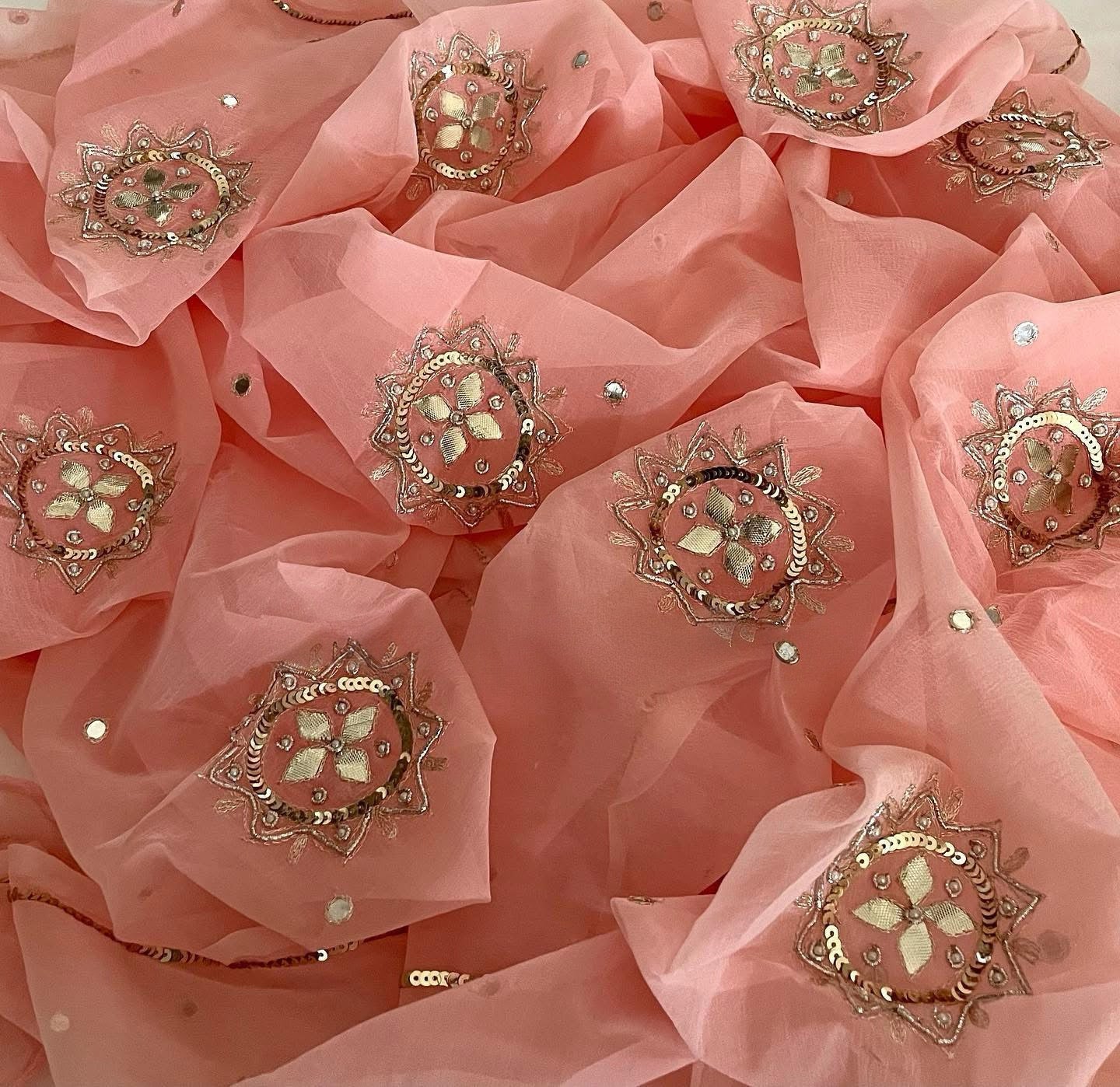 Peach sequins Gottapatti saree