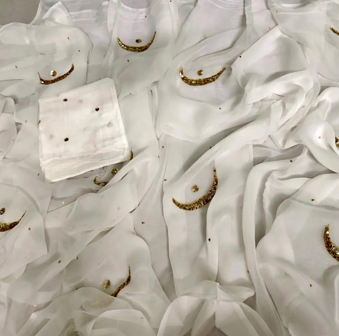 White golden sequins moon saree